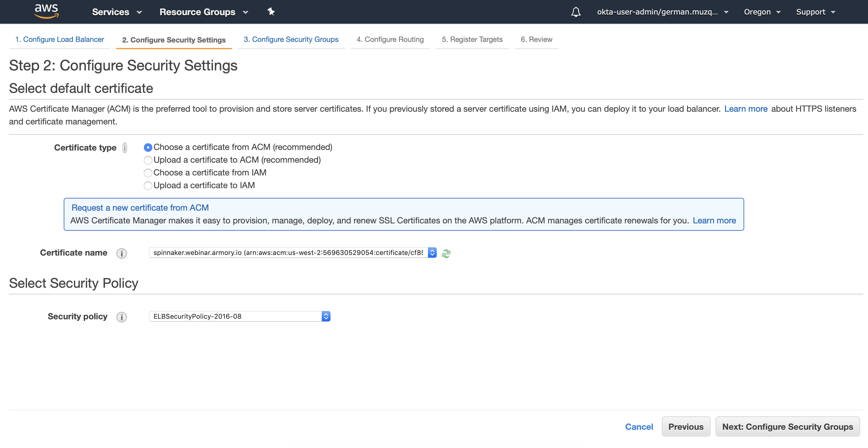 This tutorial presumes you’ve already created a certificate in the AWS Certificate Manager.