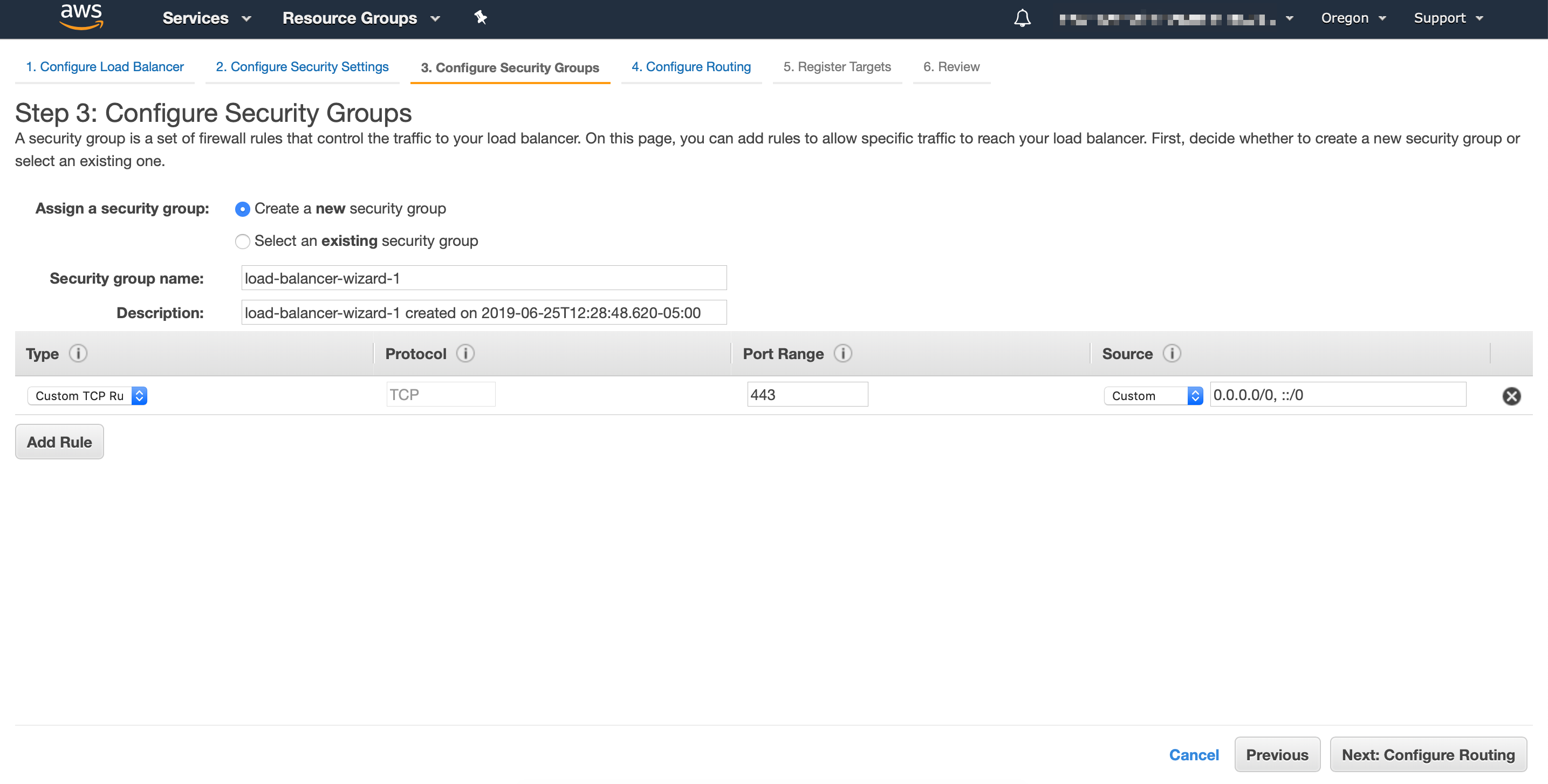 In the next screen you can either select an existing security group or create a new one for your load balancer: