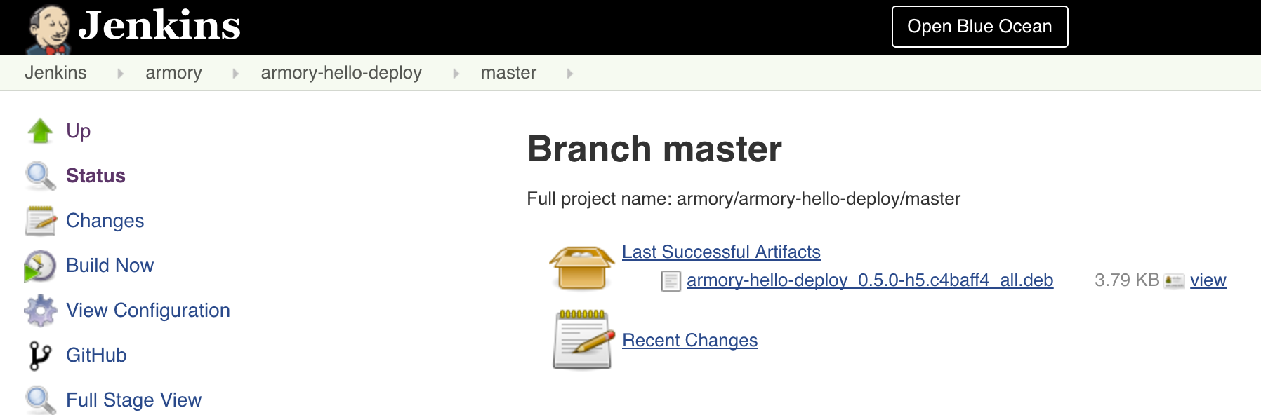 The last run archived a package named armory-hello-deploy_0.5.0-h5.c4baff4_all.deb