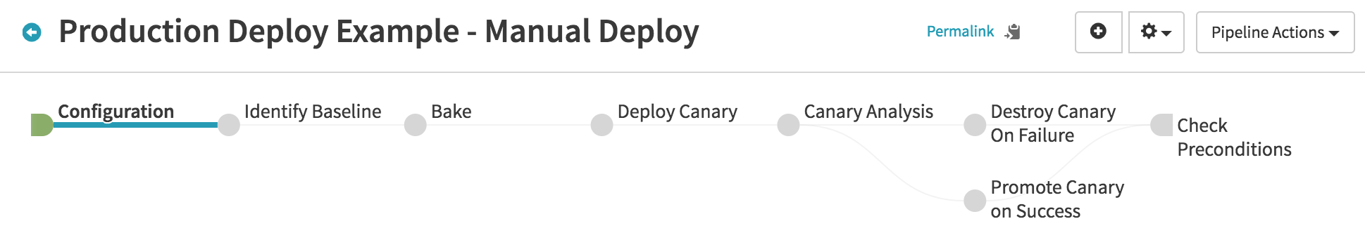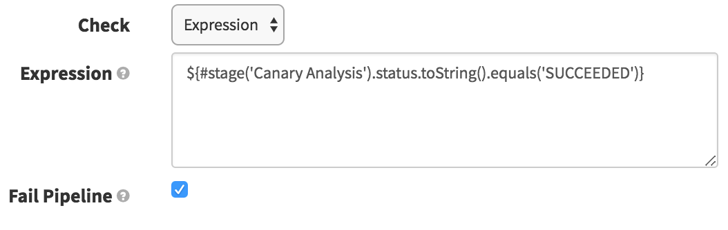 The purpose of this stage here is to simply fail the pipeline if the canary fails to pass. Since we are ignoring the failure on the Canary Analysis stage in order to proceed to our cleanup/promotion stages, we want this stage to fail if the canary failed. Here we just check that the Canary Analysis stage succeeded (and if it did not, it will fail the pipeline).
