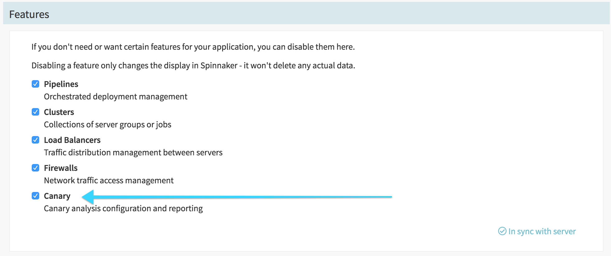 When Kayenta is enabled for your instance, you should see a Canary option in your app’s config section: