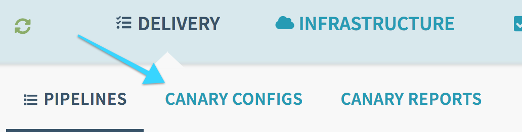 Your menubar should show Delivery and you should see the option for Canary Configs as a hover, or as a submenu element: